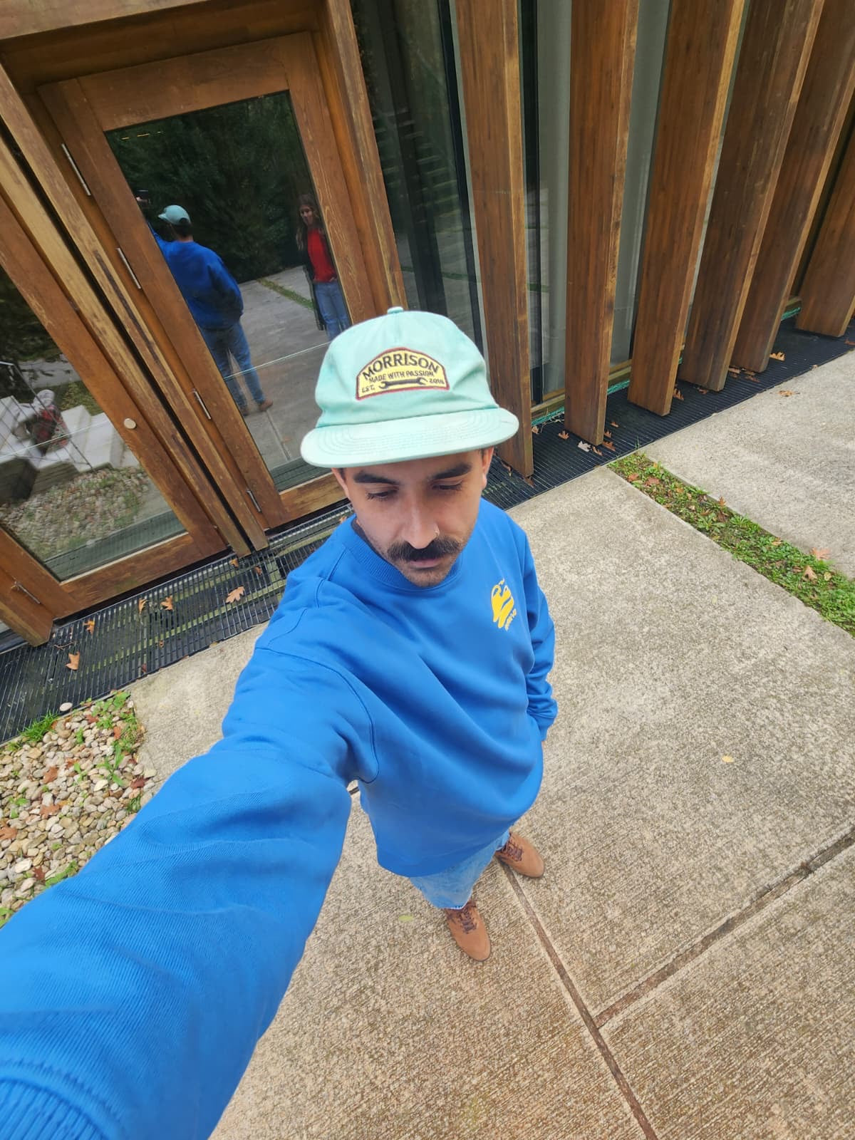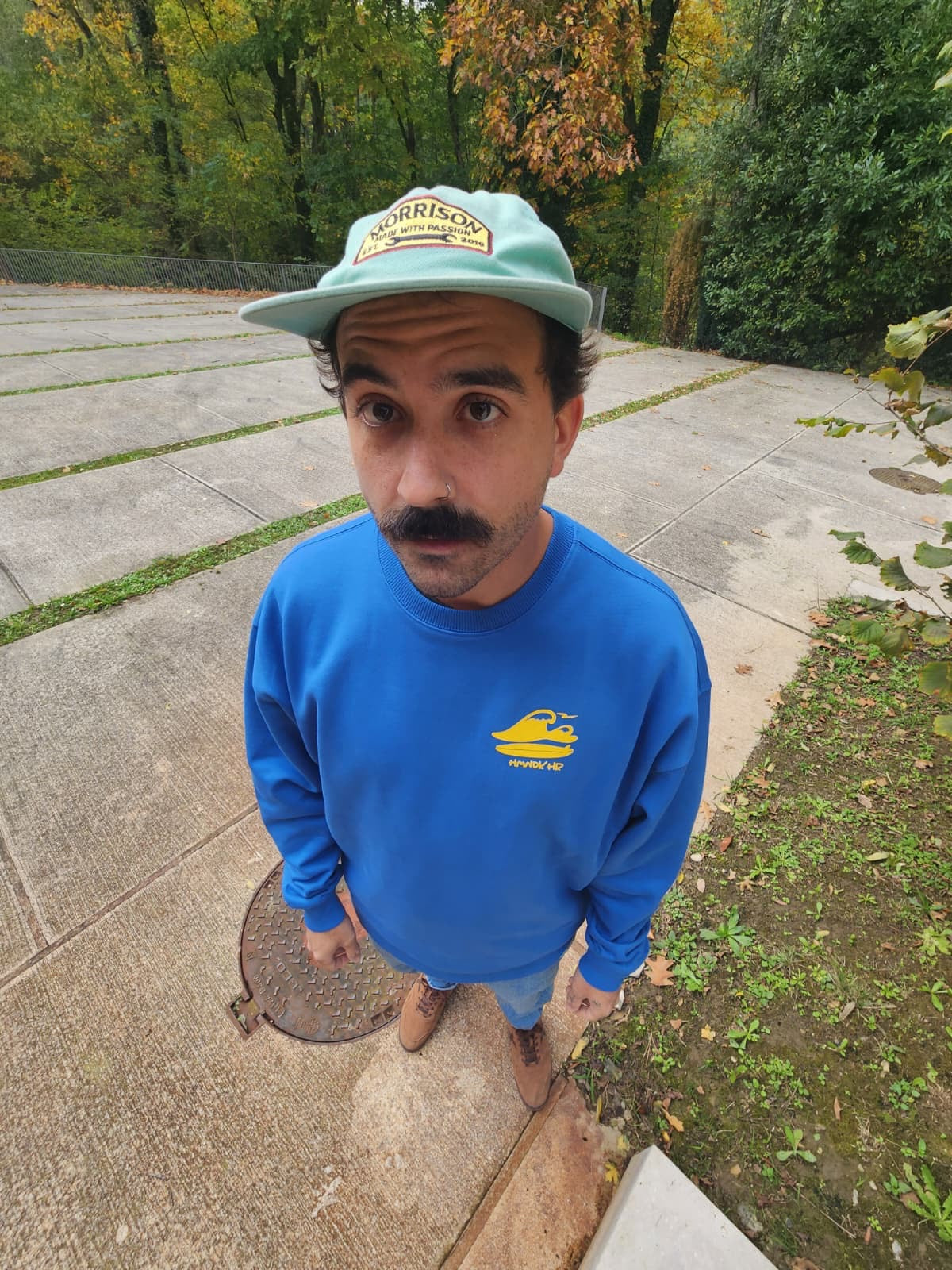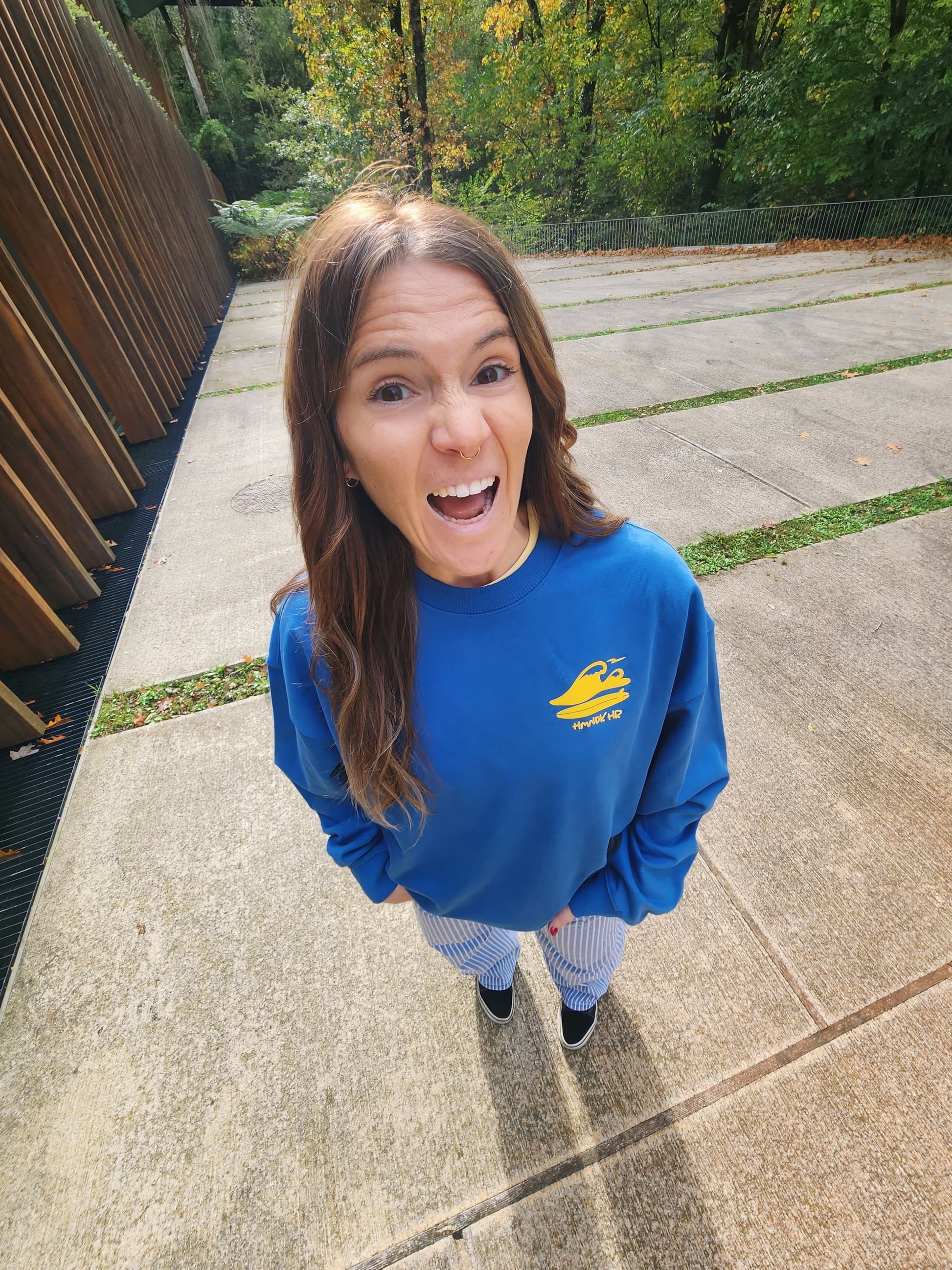 Sudadera Olatua color azul electrico, con estampación en color amarillo.